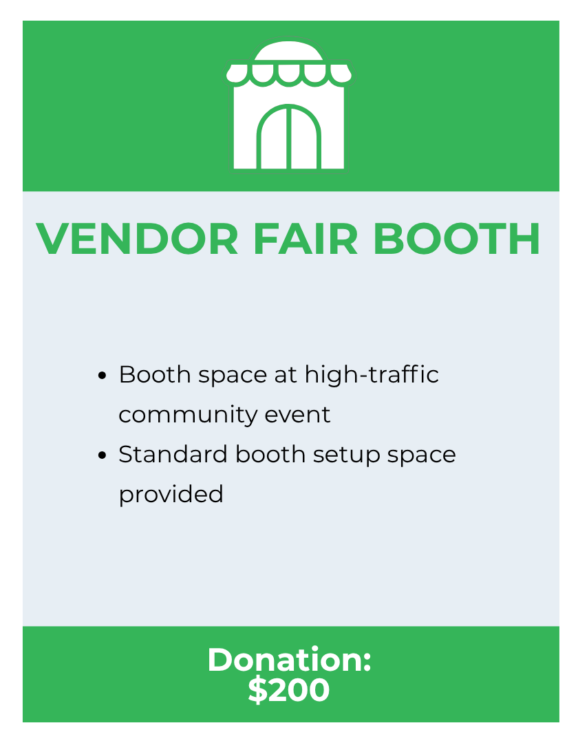 Local Businesses & Resources: Booth space for the Vendor Fair is limited; therefore, registration will be on a first-come basis. Please process your donation and complete the Sponsor Registration below to ensure your space is reserved.
